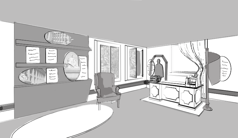 The intent for these concepts was to turn this space into a visual representation of the grandiose courthouse that was interactive and interesting to its many child visitors taking a field trip.